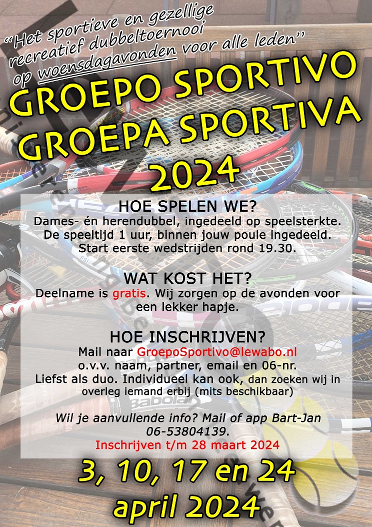 Gezellig (recreatief) dubbel tennissen met 'verplicht' naborrelen.