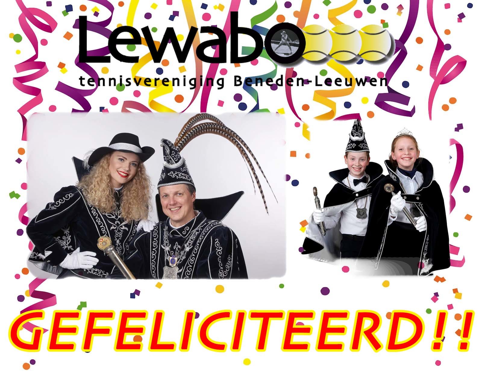 Bestuur en commissies van Lewabo feliciteren Prins Cees d'n Urste en zijn Funkenmarieke Robinn.