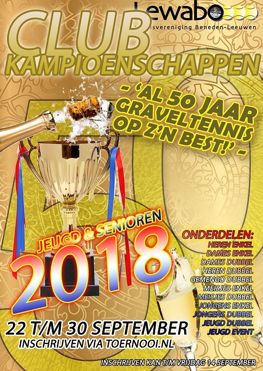 Clubkampioenschappen 2018 - inschrijven kan nog tot 14 september...