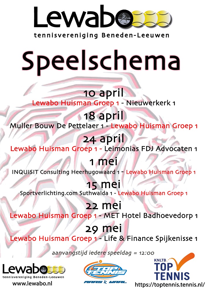 Klik op onderstaande link voor meer informatie en alle speeldata van Lewabo Huisman Groep 1.