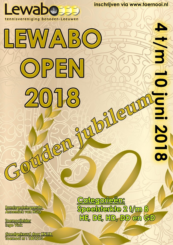 Dus schrijf je in voor 'GOUDEN JUBILIEUM LEWABO OPEN 2018'.