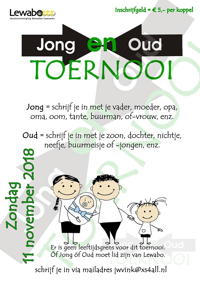 Beste jonge en oude spelers, het Jong-Oud Toernooi 2018 is dit jaar op 11 november.
