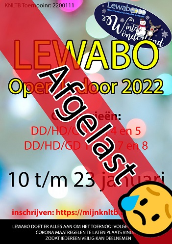 Vanwege de verlengde maatregelen hebben we ook de plannen voor het Open Indoor toernooi in januari 2022 moeten herzien. We kunnen helaas niet veel anders dan het toernooi af te gelasten.