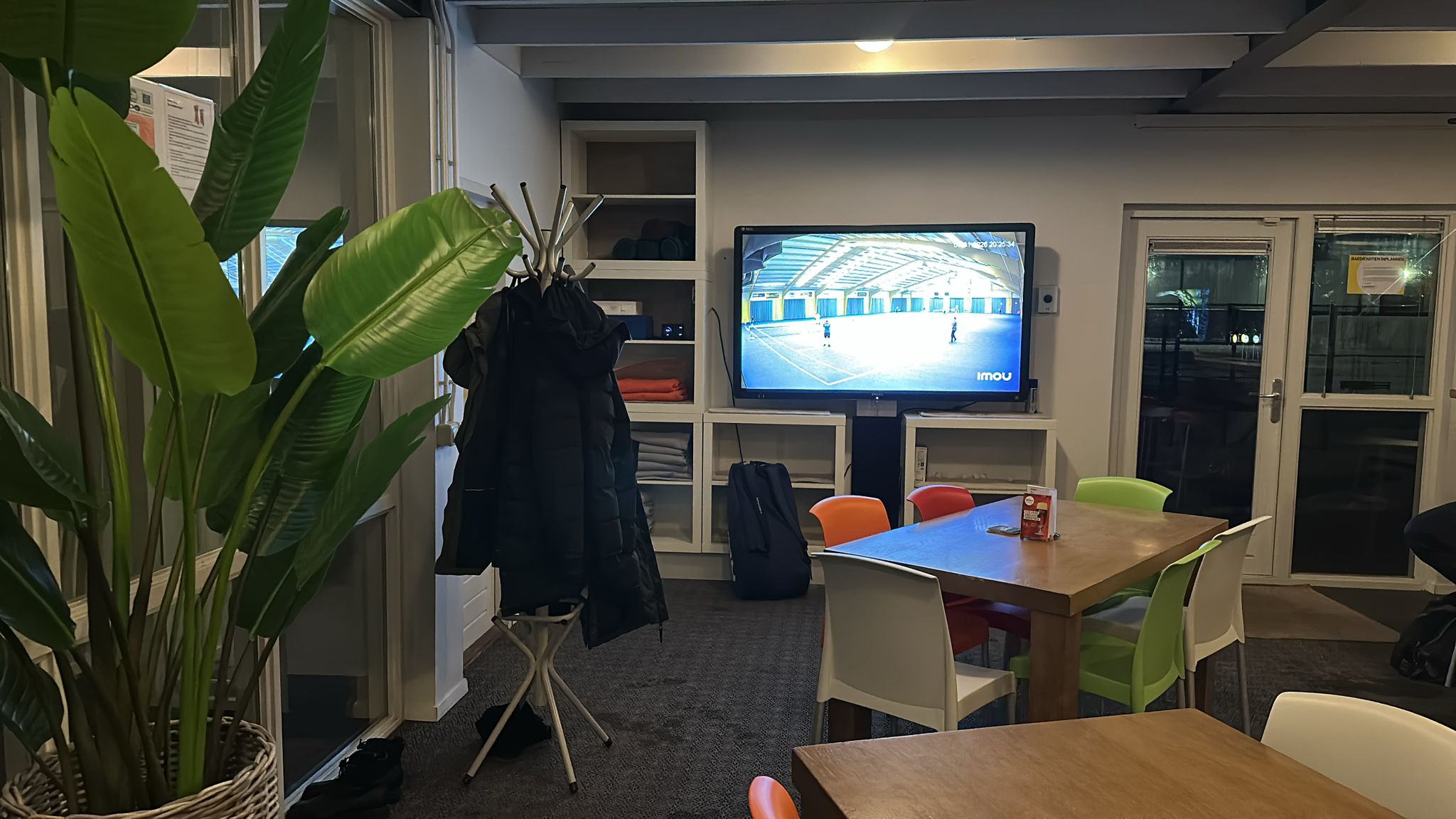 Op dit scherm kunnen we vanuit de kantine de wedstrijden in de hal volgen dus dat is erg fijn en leuk. We zullen dit scherm in de toekomst ook inzetten voor sponsoring en andere zaken.