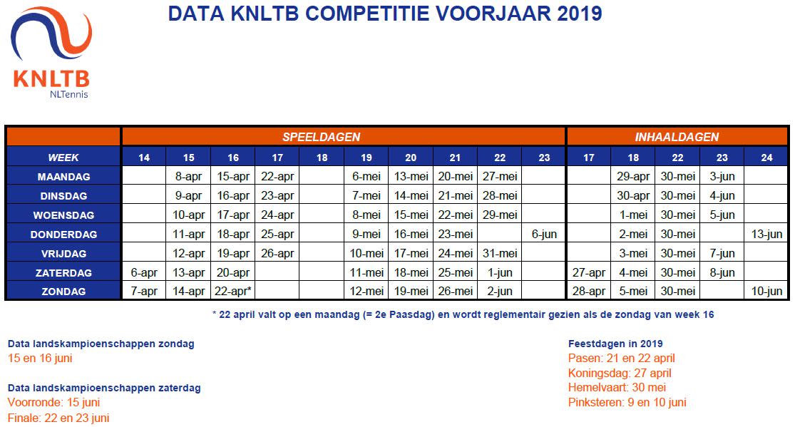 Wil je weten op welke data de voorjaars competitie gespeeld gaat worden?