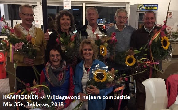 Vrijdagavond Mix 35+ kampioen in de najaarscompetitie 2018